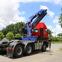 Điểm đặc biệt của cẩu PM là thiết kế cần gấp khúc (cẩu Robot). Với 4 đoạn cần có thể vươn xa tối đa khoảng 16 mét, cẩu có thể tiếp cận các vị trí khó khăn, làm việc trong không gian hẹp, hoặc vươn tới các container ở vị trí sâu bên trong. Khả năng gấp gọn khi không sử dụng cũng giúp tối ưu hóa không gian trên xe, đảm bảo an toàn khi di chuyển.
