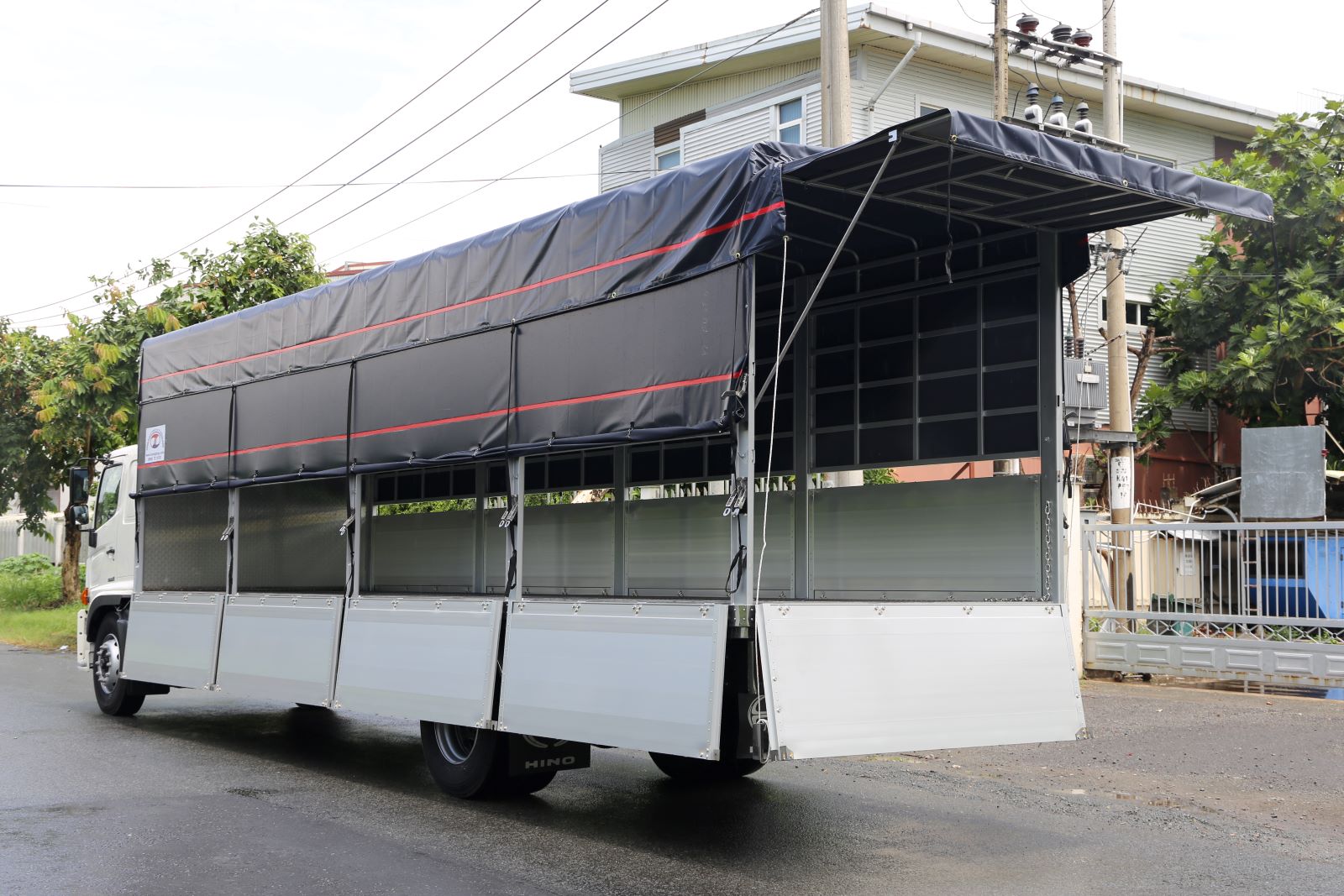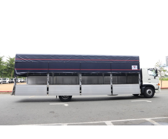 Điểm nhấn đặc biệt của cấu hình xe Hino FG8JT8A-PGX tải trọng 7,8 tấn mà chúng ta đang đề cập là phiên bản thùng mui bạt với 09 bửng nhôm, có chiều dài lên đến 9,2 mét. Đây là một cấu hình thùng vô cùng linh hoạt và tiện dụng, phù hợp với nhiều loại hàng hóa và quy trình bốc dỡ khác nhau.