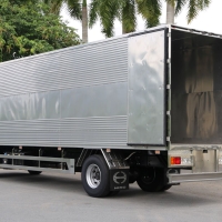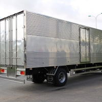 Sàn thùng xe được gia cố chắc chắn, có thể chịu được tải trọng lớn. Các mối hàn được thực hiện tỉ mỉ, đảm bảo tính thẩm mỹ và độ bền. Hệ thống cửa mở linh hoạt, dễ dàng đóng mở và khóa an toàn, bảo vệ hàng hóa khỏi tác động của thời tiết và nguy cơ mất cắp.