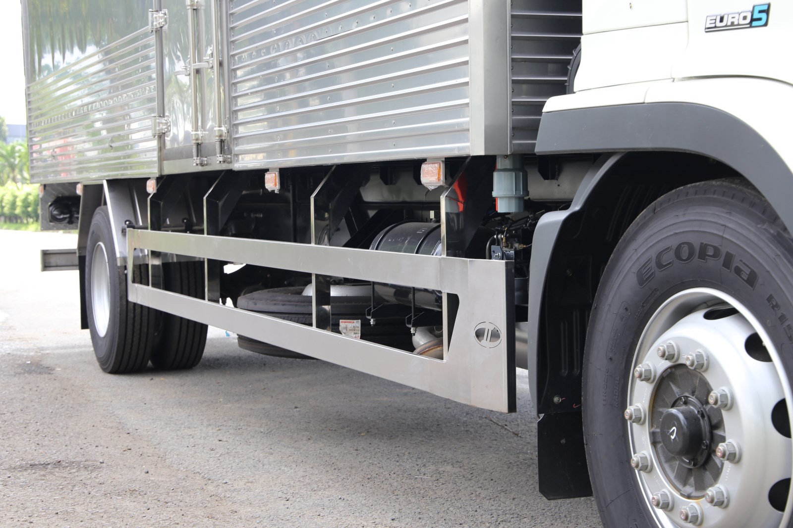 Hệ thống phanh khí nén toàn phần 2 dòng đảm bảo khả năng phanh hiệu quả trong mọi tình huống. Ngoài ra, xe còn được trang bị hệ thống đèn chiếu sáng mạnh mẽ, giúp tài xế di chuyển an toàn trong điều kiện thiếu sáng.
